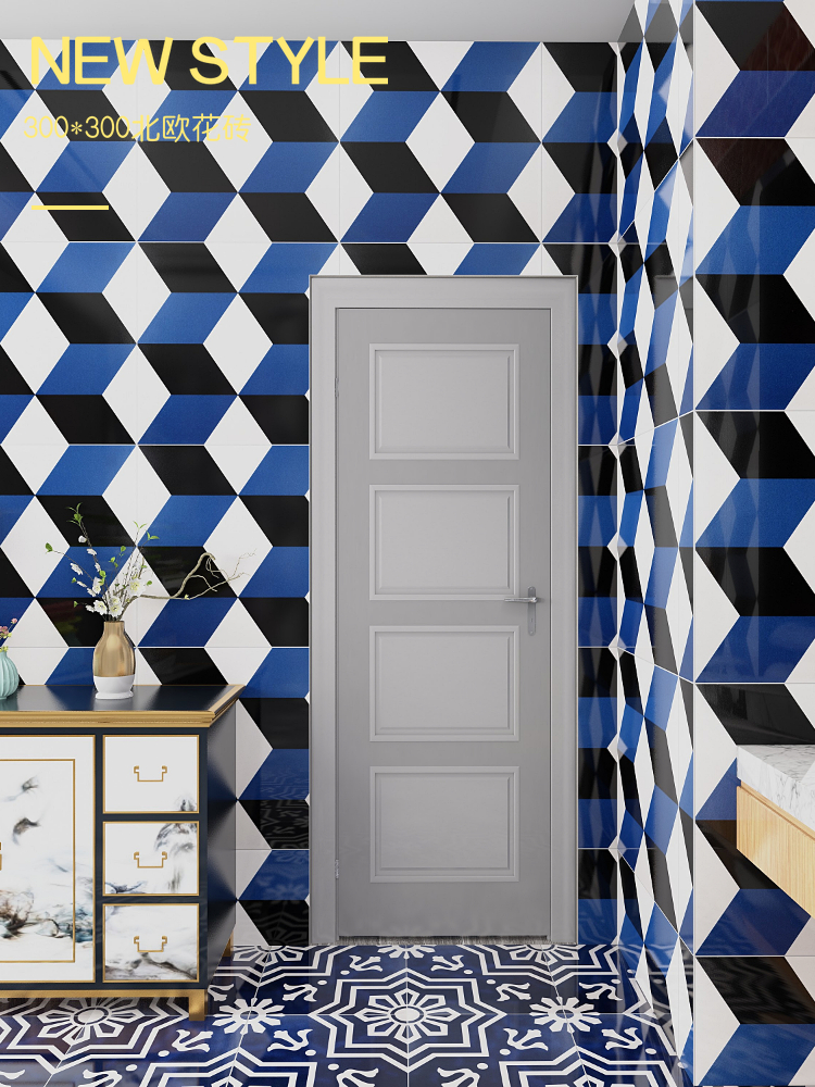 Nordic minimalist blue geometric small flower brick dining room Makeup Room Non-slip Floor Tiles Kitchen Wall Brick 300 × 300 Living room