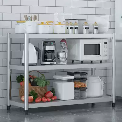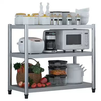 Stainless steel kitchen shelf Floor-to-ceiling multi-layer microwave oven cabinet storage shelf storage shelf Household artifact