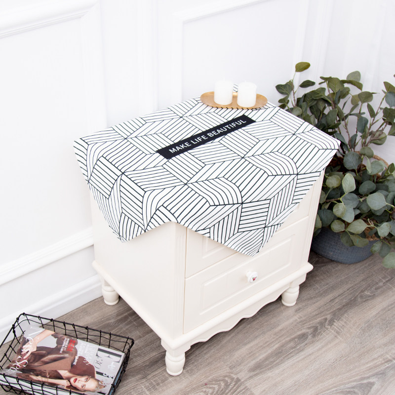 Square bedside table cover cloth dustproof sunscreen cotton linen cover towel bed bag support custom home fabric