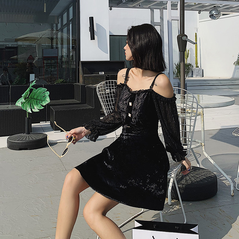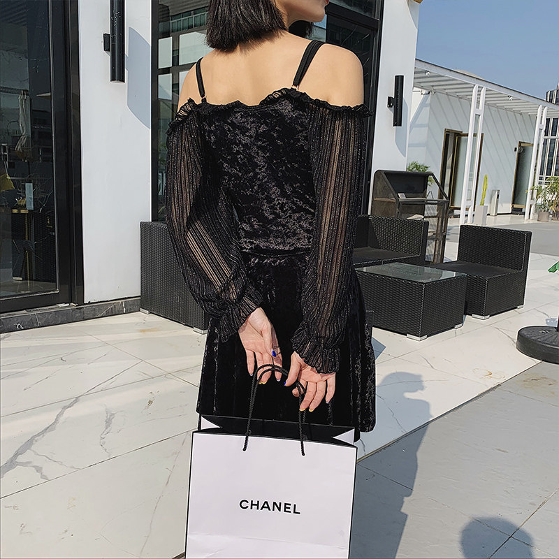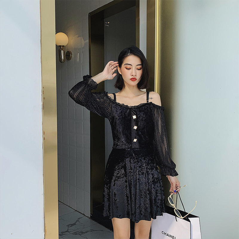 Large size swimsuit woman fat MM200 catty with bare shoulders covered with slim sexy swimsuit spa sunscreen black