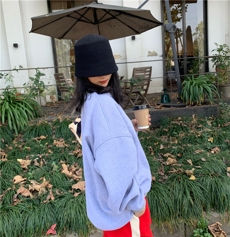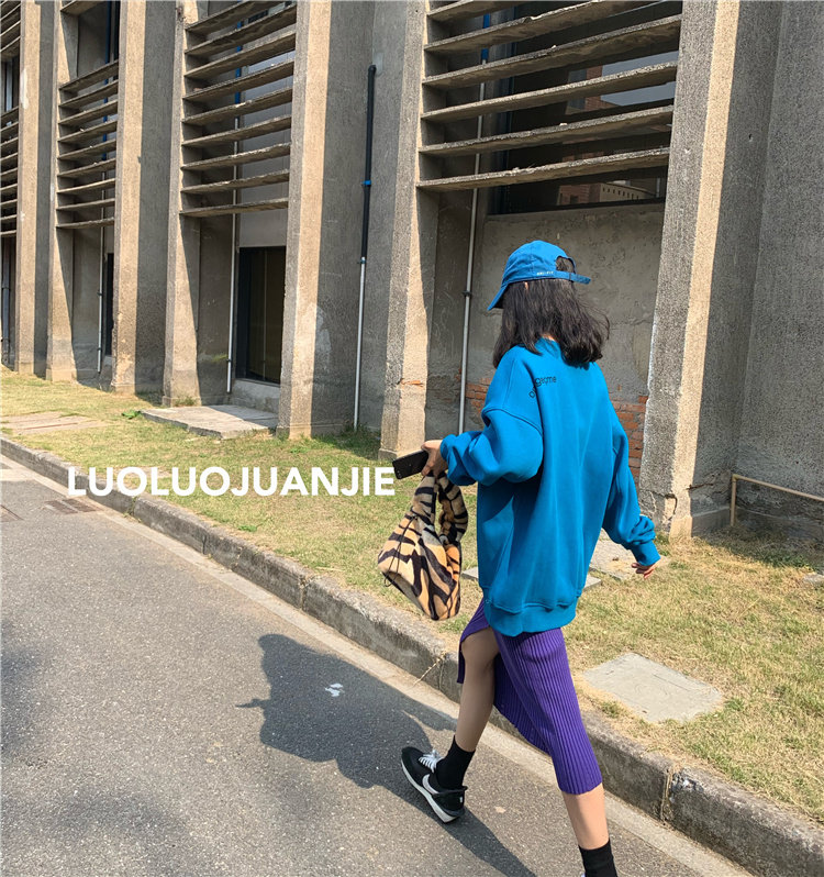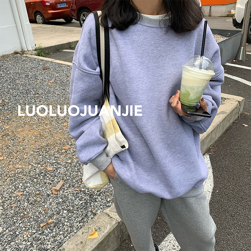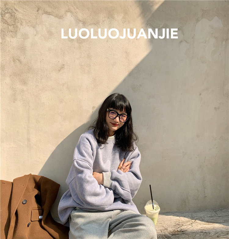 Luoluojie short blue sweatshirt 2022 new women's waitmore thickened and fleece pullover round neck coat