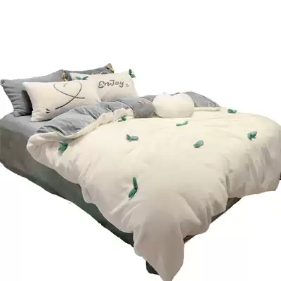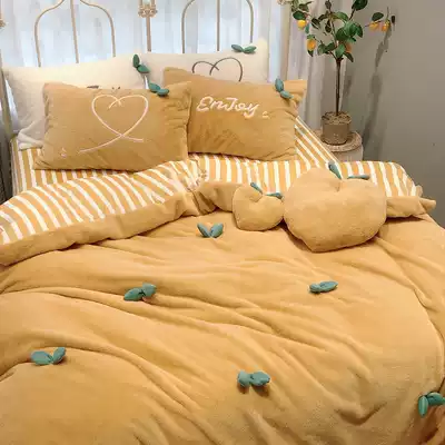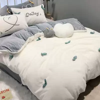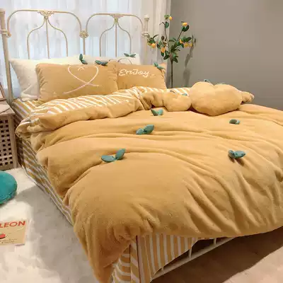 Girl Heart Rabbit Rabbit velvet bed four-piece thickened princess style coral velvet quilt cover winter Falai velvet sheets bed hats