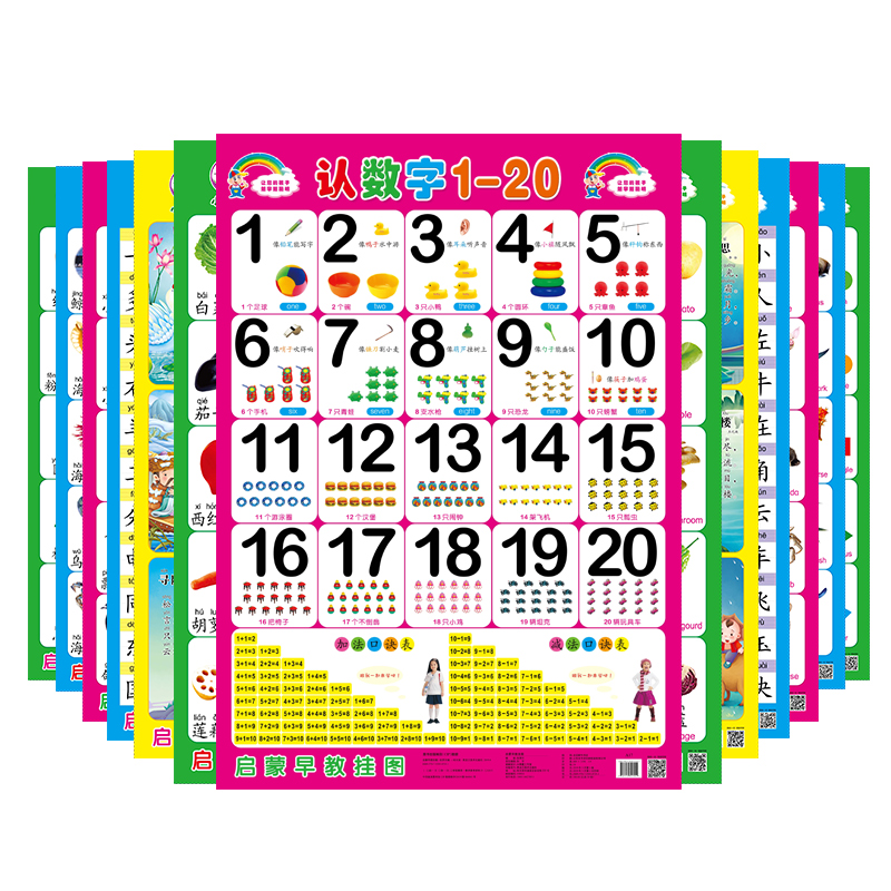Recognize numbers in English three-character Sutra multiplication table literacy (send double-sided adhesive)