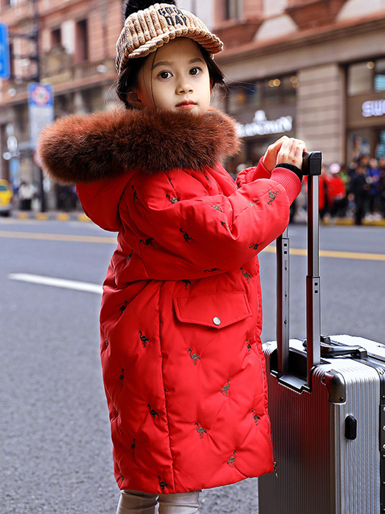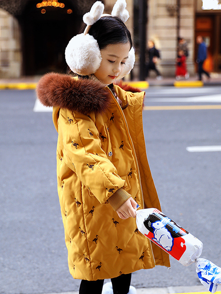 Britain's next kiss girl's down suit for long version 2020 new grand woolen collar child Han version foreign coat
