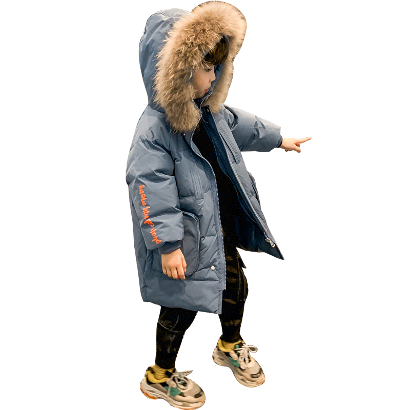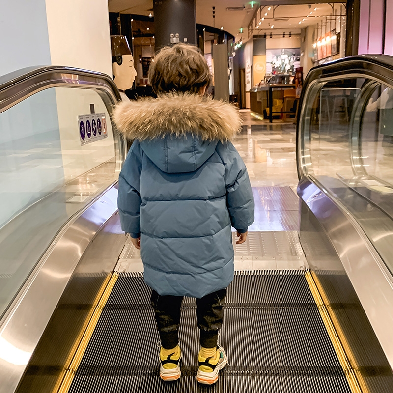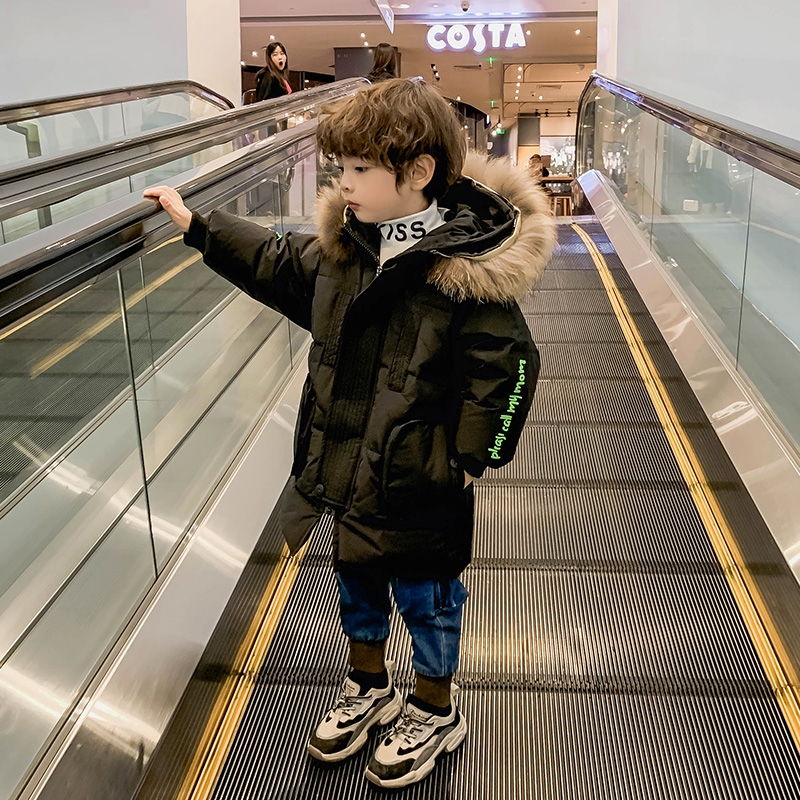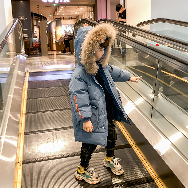Boy down clothes baby medium long version white duck suede jacket 2021 winter clothing new children's foreign pie tooling even cap tide