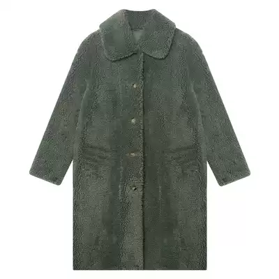 solighter Wool Coat Simple Straight Long Edition Leather Wool One Granular Wool Coat