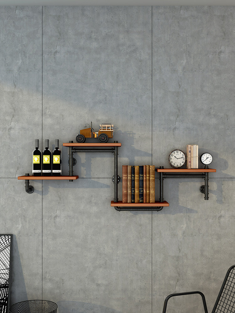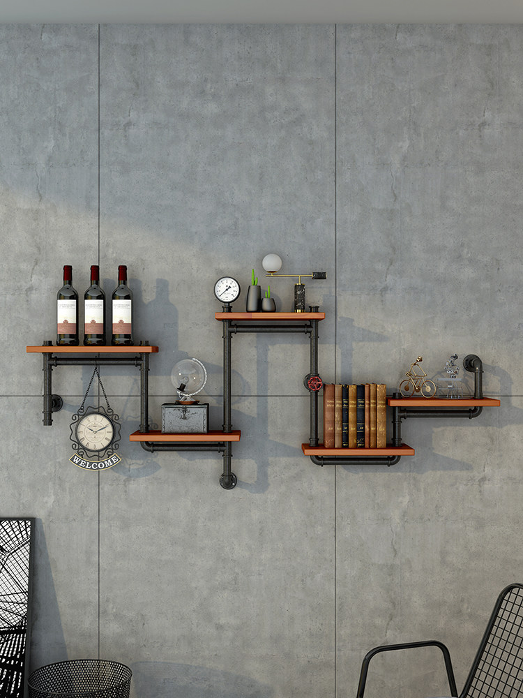 Industrial style decorative wrought iron wall wall hanging rack wall partition creative bookshelf laminate bar wine rack LOFT