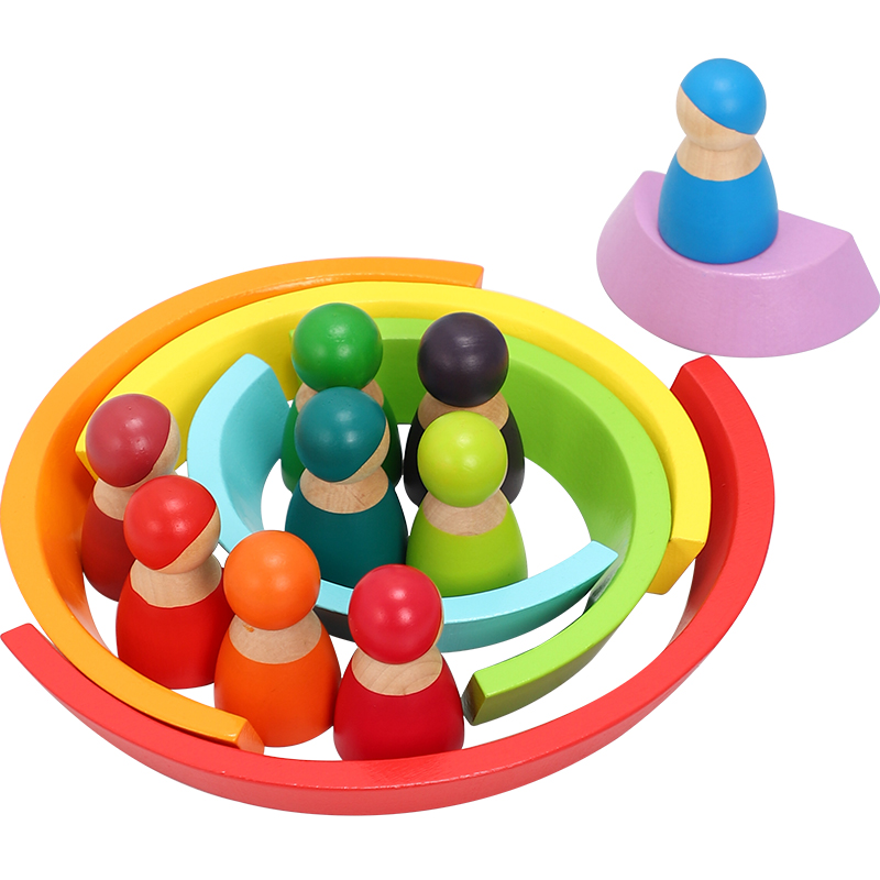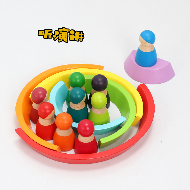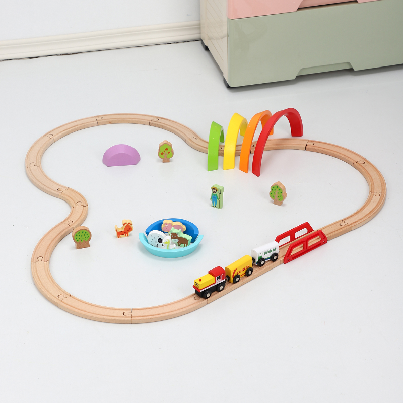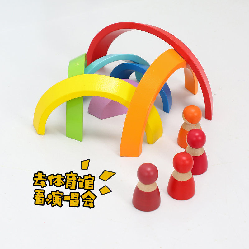 Child Rainbow Building Wooden Rail Car Small Train Suit Puzzle Toy Layer Laminated Stacks Lap 2-5 years old-Taobao