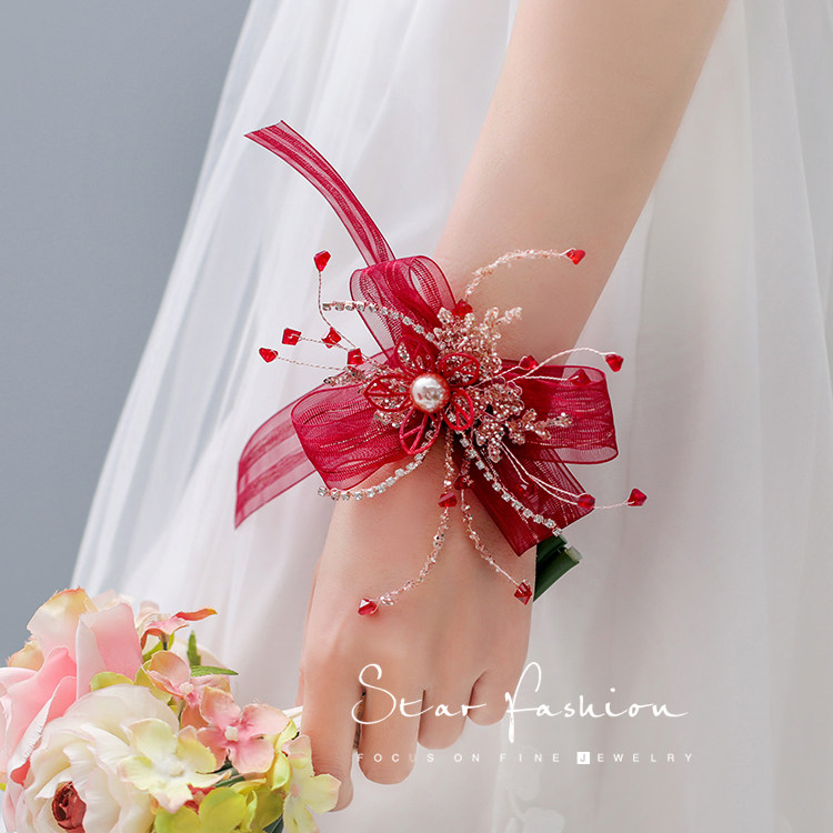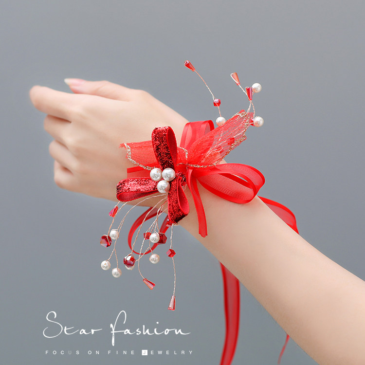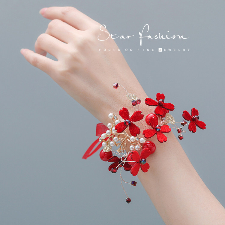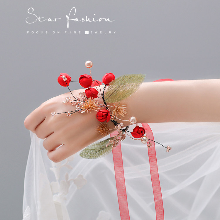 Elegant and solemn red hand ornaments wrist flowers Chinese wedding Xiuhe hand flowers toast clothes Chinese clothing dance performance accessories