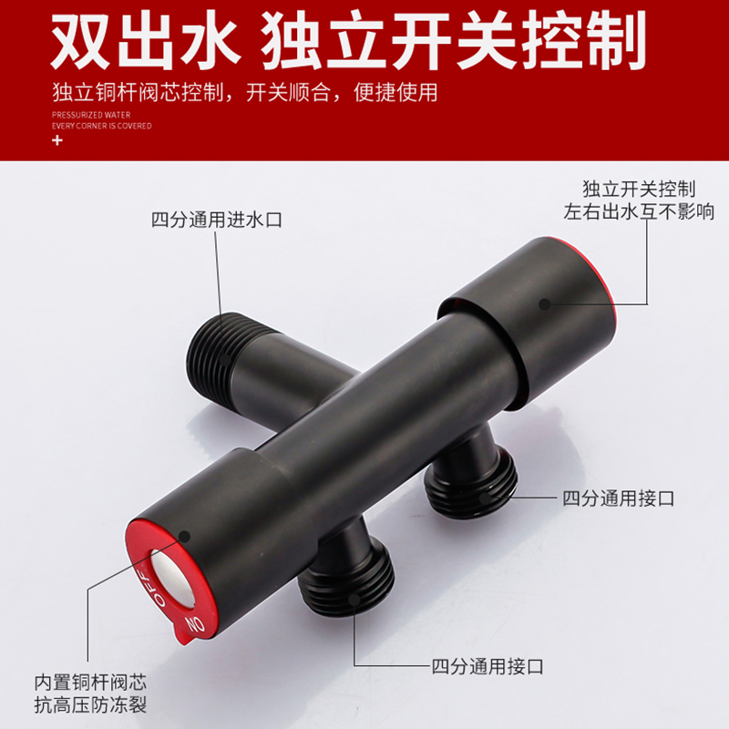 Double cut one-in-two-out angle valve 304 stainless steel three-way one-in-two multi-function spray gun toilet diversion faucet