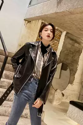 Leather Sheepskin Locomotive Leather Jacket Jacket Female Star Yun Er with oversize Loose Medium and Long Edition bf
