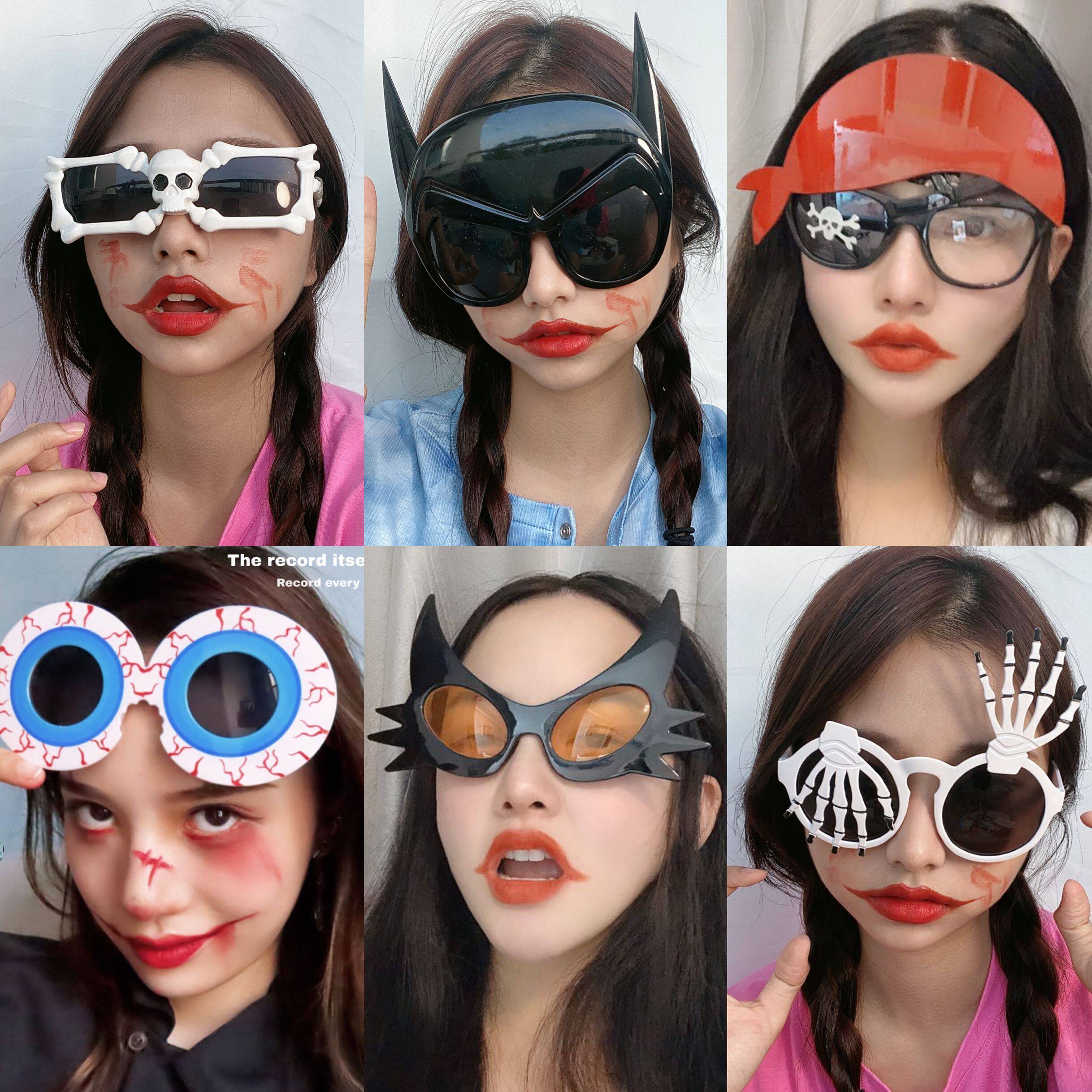 White frame Spider lens bleeding white skull eagle mask pumpkin black film Bat white ghost claw cat woman orange lens hero mask blood eye white spot black mask pirate mask all black female bat Red Horn