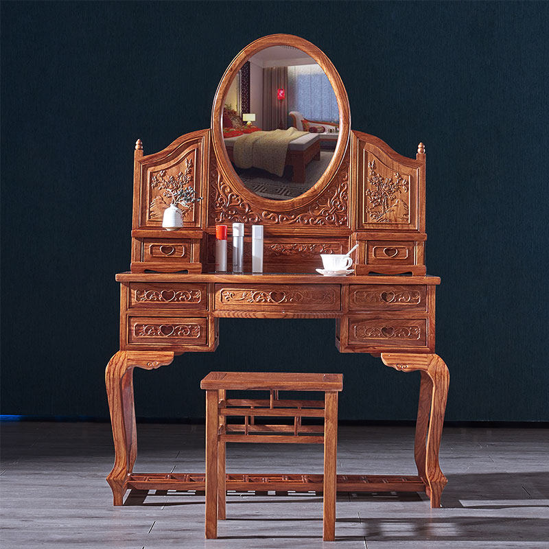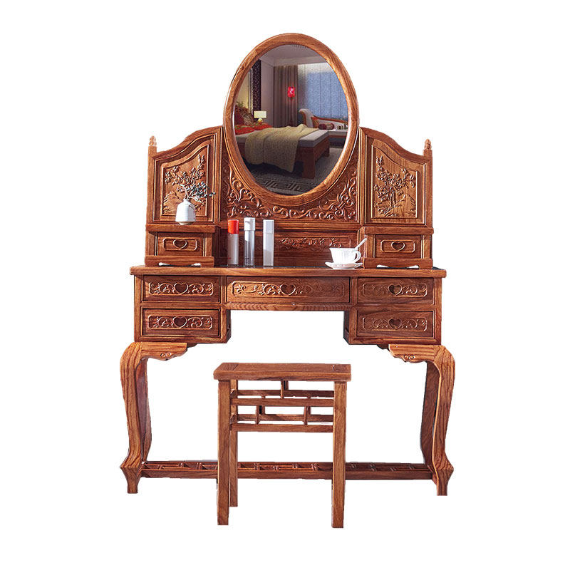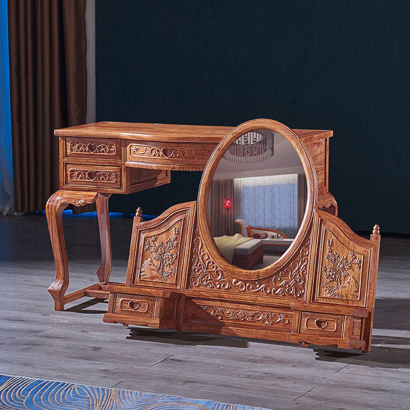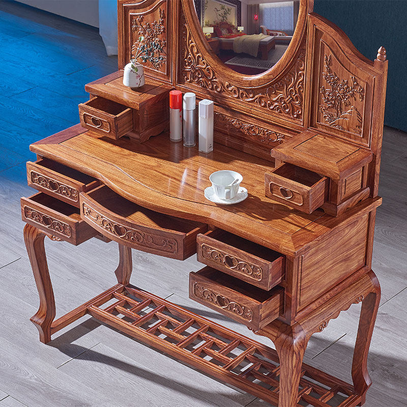Red Wood Antique Chinese Style Flowers Pear Wood Makeup Bench Solid Wood Hedgehog Purple Sandalwood Makeup Table Small Family Type Bedroom Manufacturer Direct