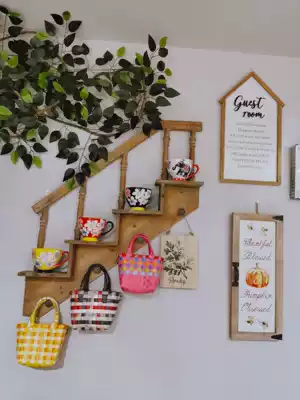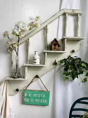 American country style designer home B & B courtyard decoration retro creative staircase wall hanging flower stand shelf