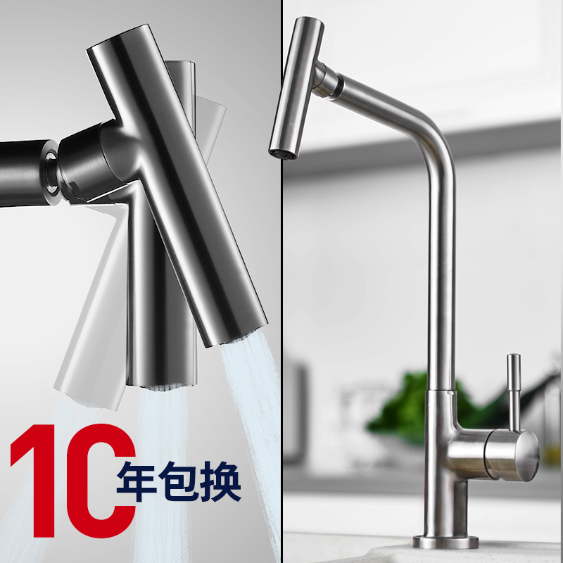 Wankang stainless steel kitchen sink faucet Hot and cold water sink basin rotatable pull-out faucet Household