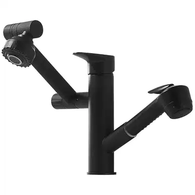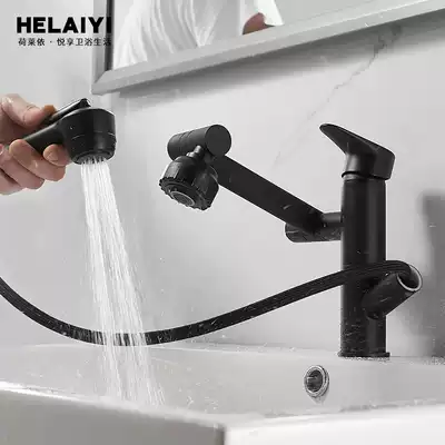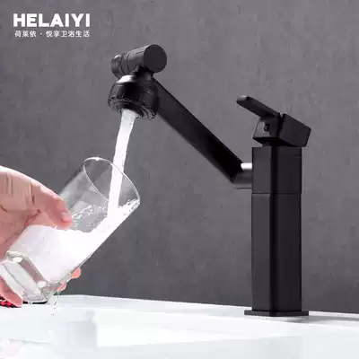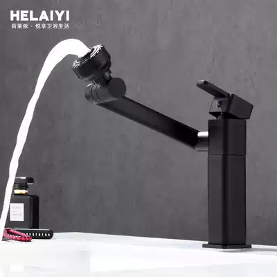 Black full copper washbasin hot and cold faucet hand basin basin cosmetic room home basin rotating single hole faucet