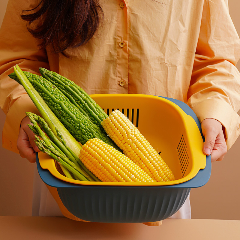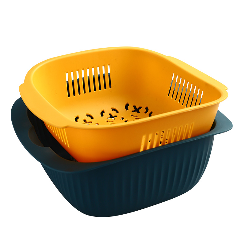 Plastic double wash basin drain basket Kitchen large creative fruit basket Wash vegetable wash fruit Amoy rice basket Nordic style