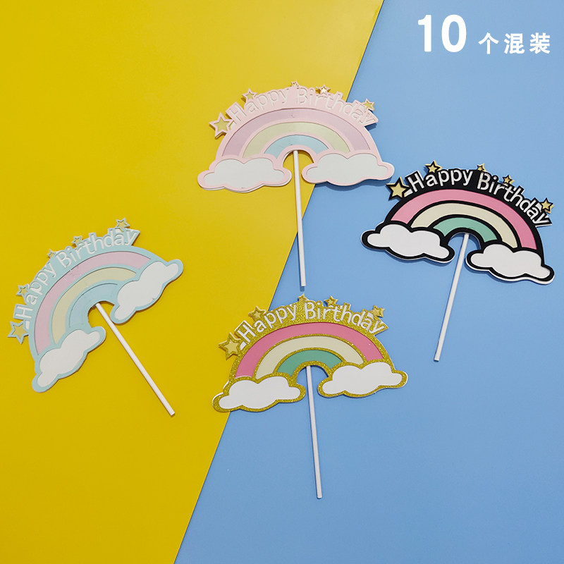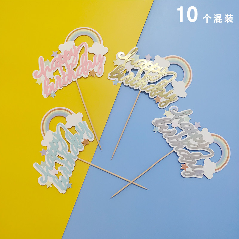 Cake Decorating Supplies Happy Birthday Card Baking Cake Decorating Card Insert Flag Cartoon Moon Rainbow Plugin