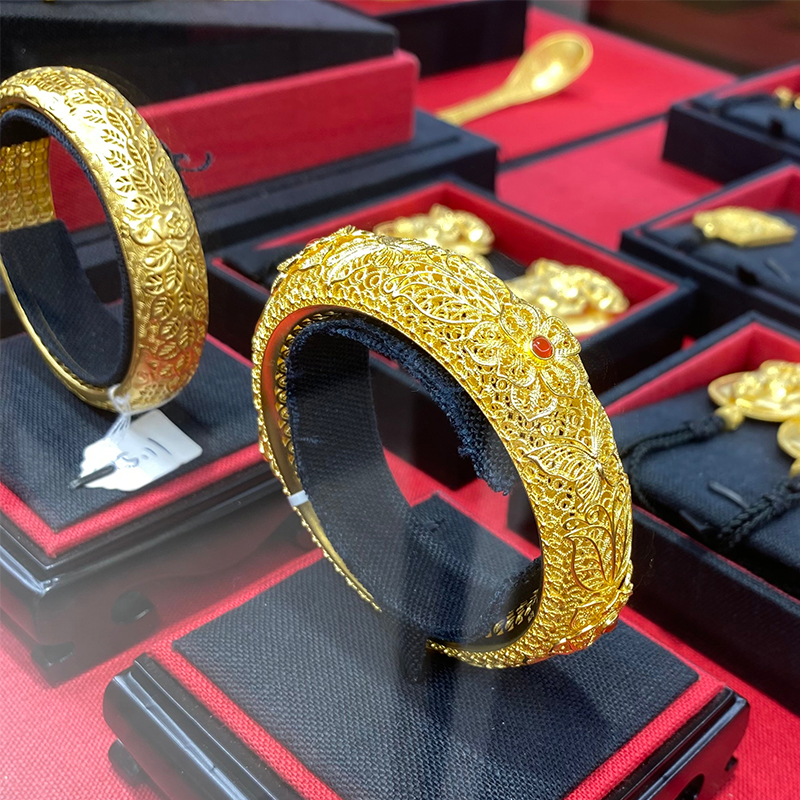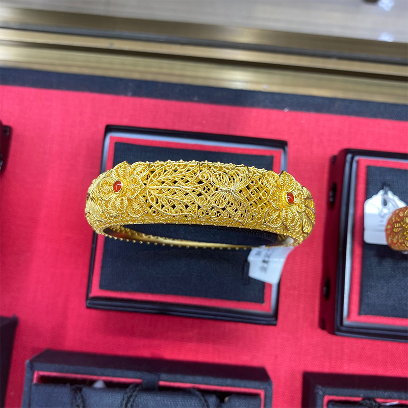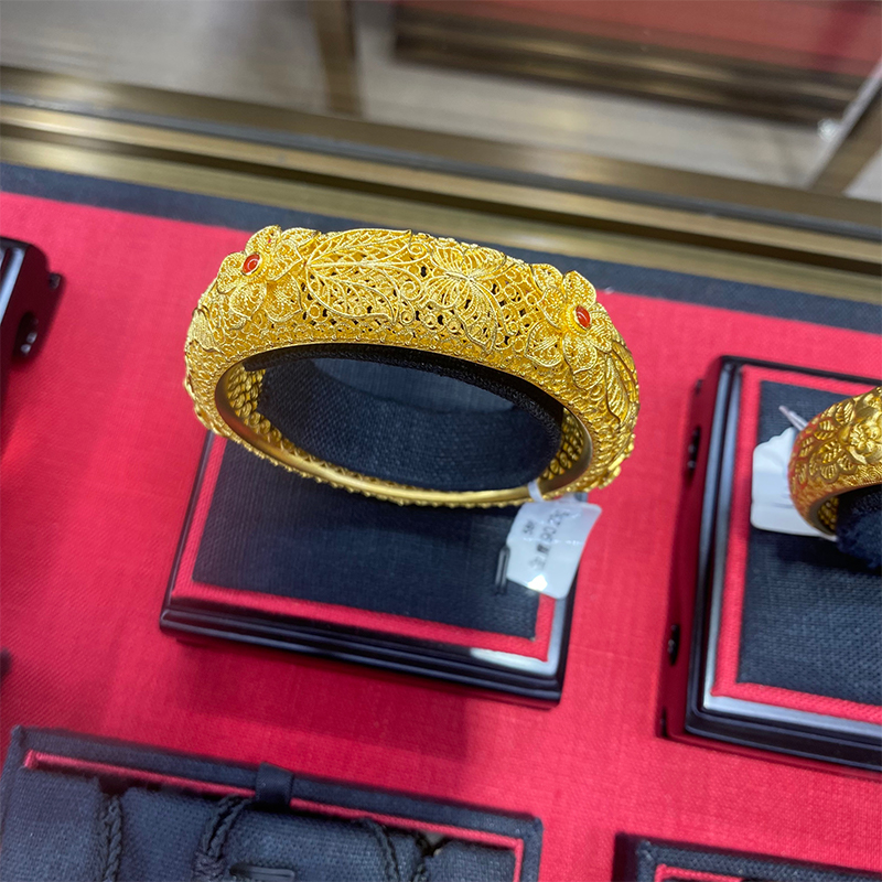 Dajiatan Jewelry Hollow Butterfly Love Flower Bracelet Hollow Filigree Classical Elegant Luxury Ancient Gold Pure Gold 999
