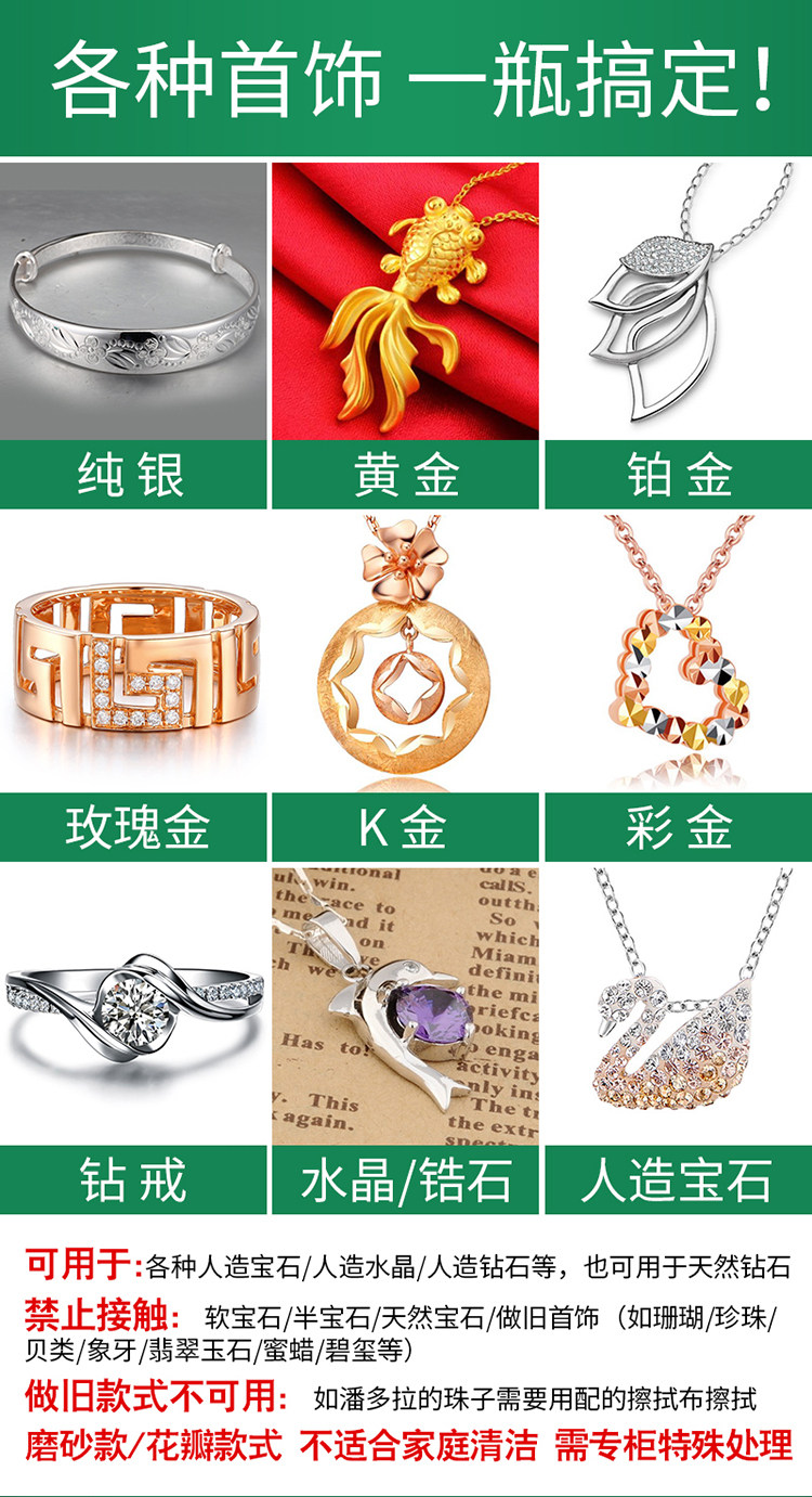 Rub silver cloth washed silver water k gold diamond ring necklace 925 pure silver jewelry cleaning cleaning agent liquid 100ml clothes