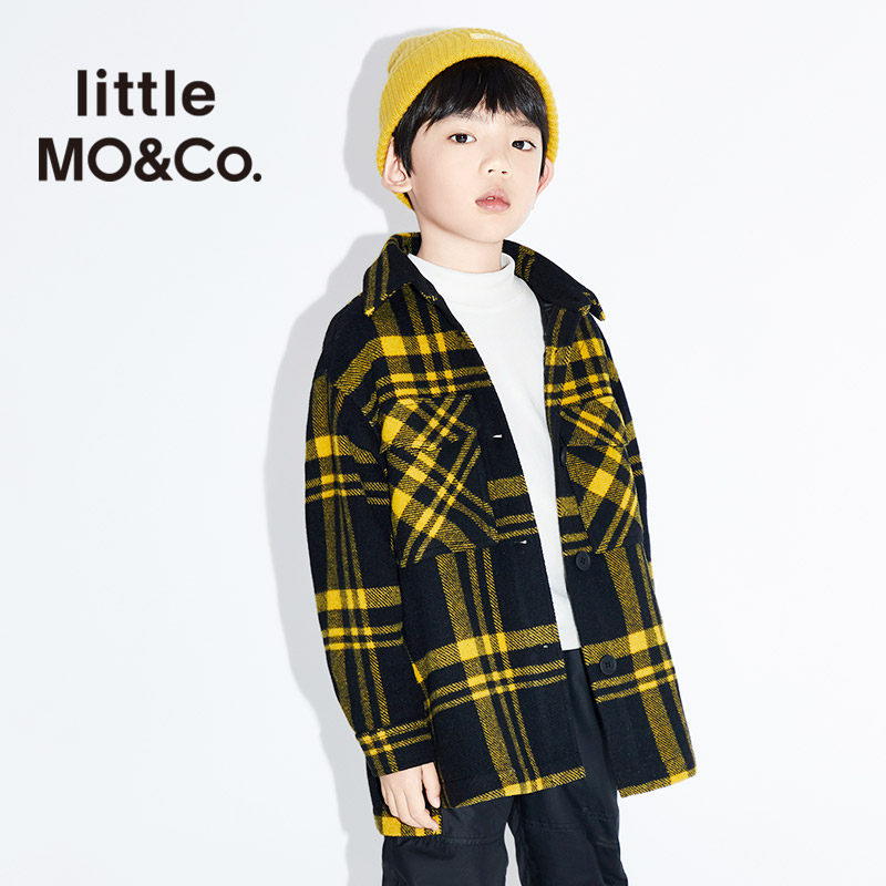 Littlemoco children's clothing spring and autumn children's tweed jacket boys and girls New Year's plaid shirt type jacket foreign atmosphere