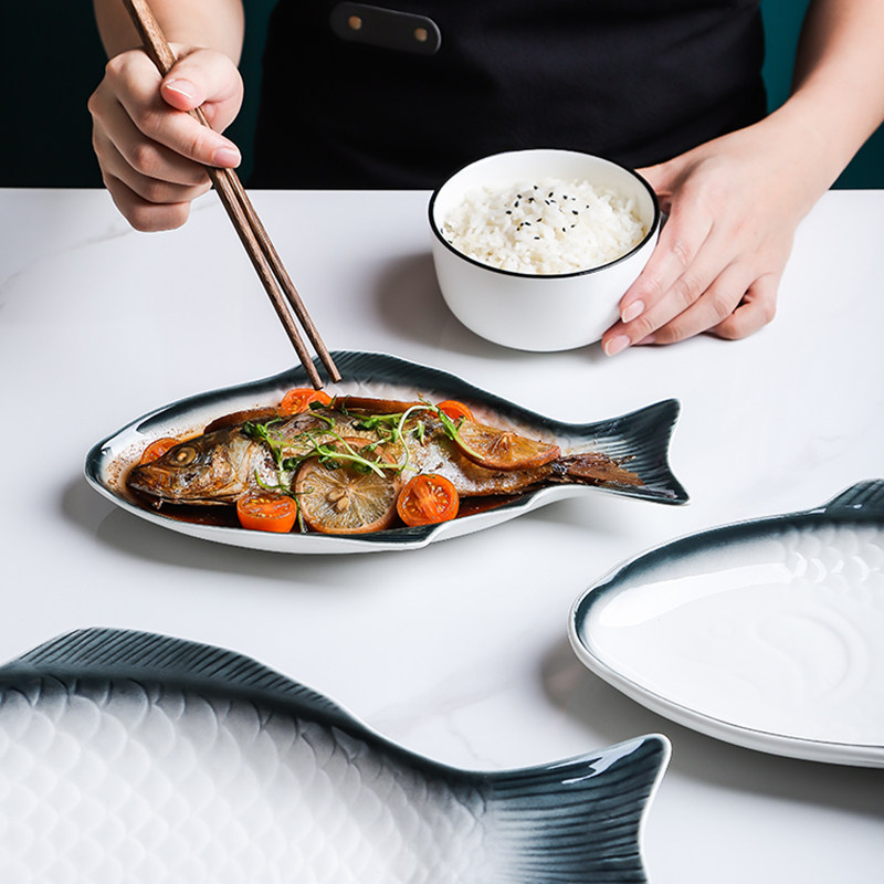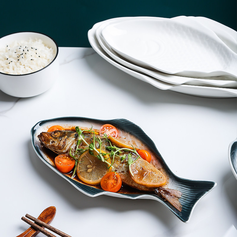 Ceramic Fish Plate Home Steamed Fish Plate Creative Tableware Nordic New Net Red Large Fish Plate Steamed Fish Plate