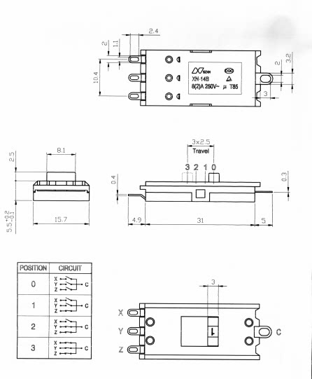 XN-14B blower switch toggle switch 250V8A 125V16A quad three stalls XINNAN universal