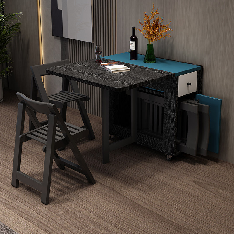 Nordic minimalist folding dining table combination small apartment home modern minimalist retractable round dining table solid wood dining chair