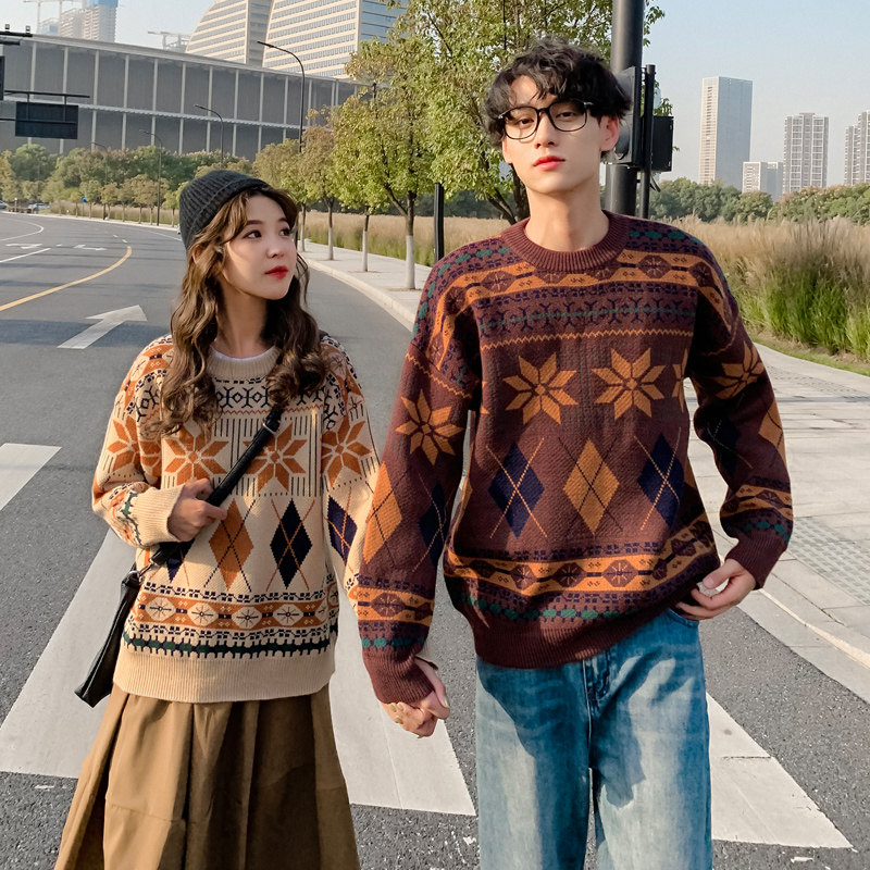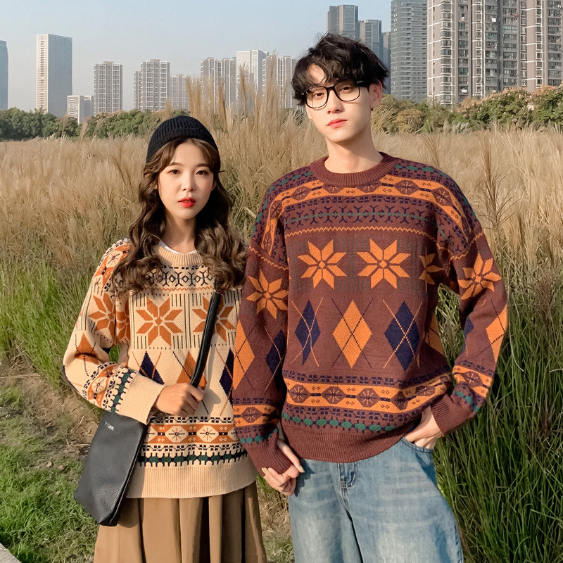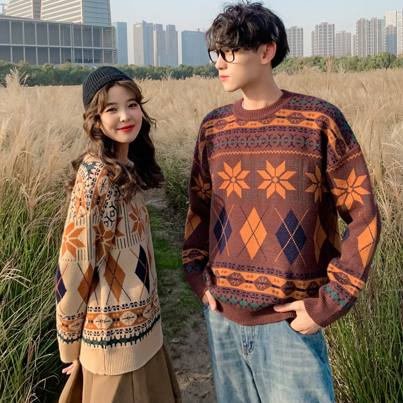 roora couple outfit autumn and winter 2020 models retro sweater men wear ins super fire Korean version loose student wild