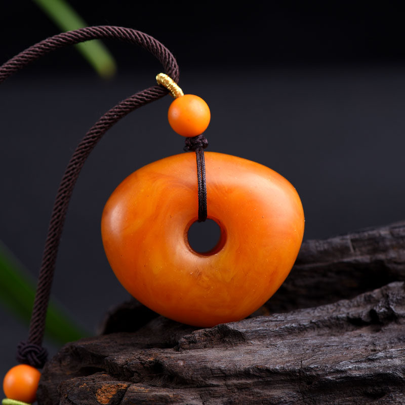 Natural beeswax safety buckle pendant amber rough stone old honey hidden buckle with type pendant water drop sweater necklace