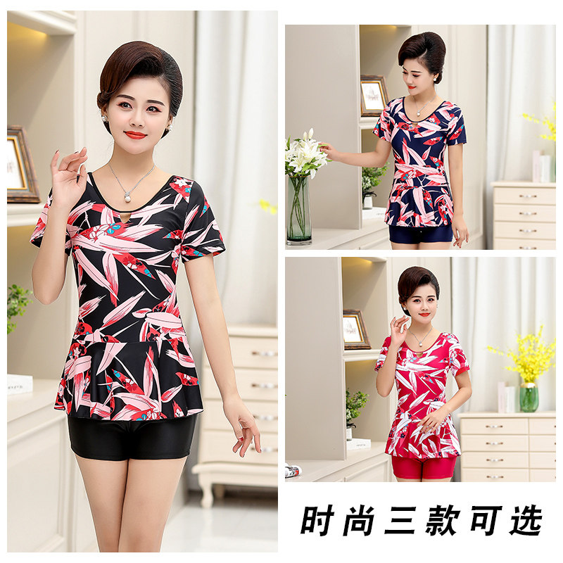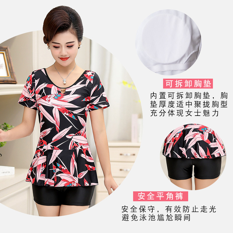 Swimsuit woman covered with slim and conservative even mid-aged mother's large size flat corner swimsuit spa bathing suit