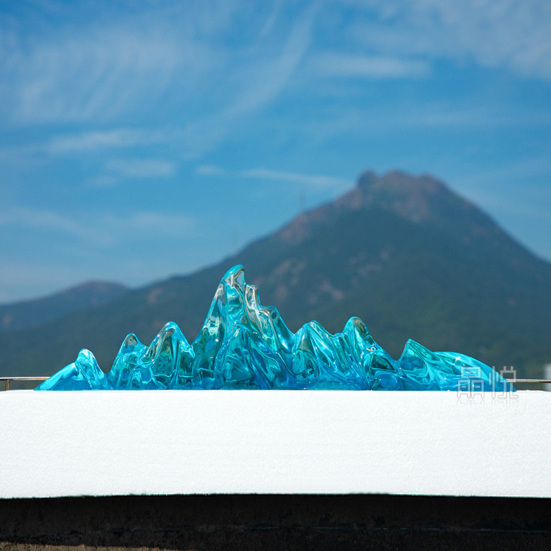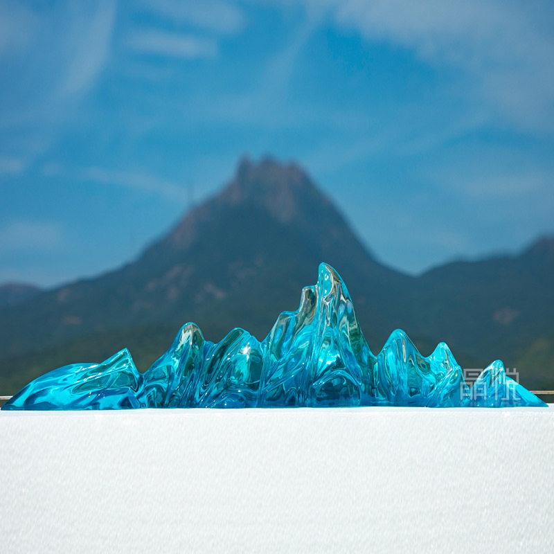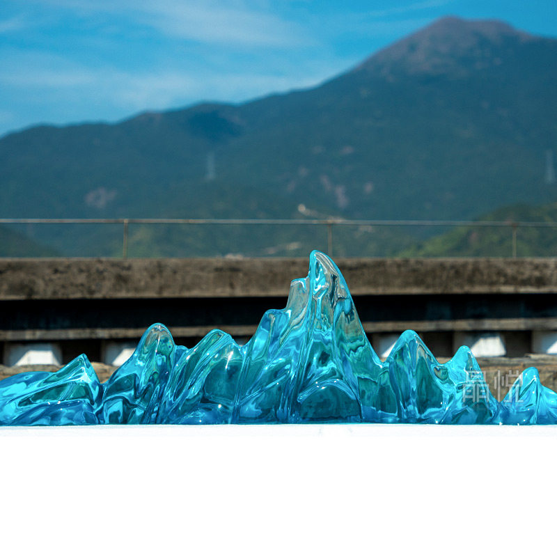Blue Fake Mountain Transparent Pendulum piece New Chinese living room Xuanguan Aisle Clubhouse Dining Hall Decoration Home Teahouse Artwork