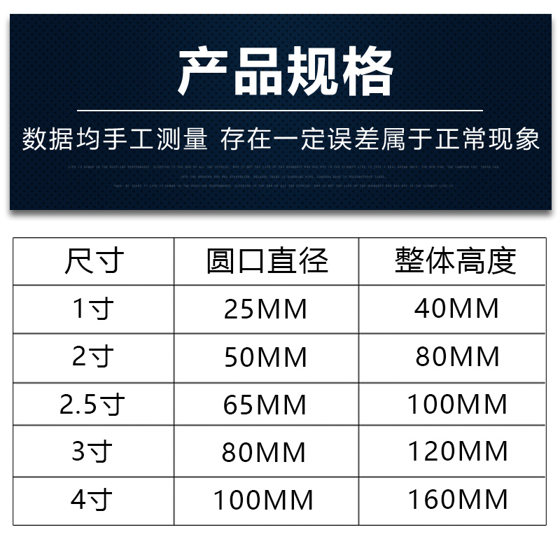 1 inch plastic joint (25mm) 1 5 inch plastic joint (40mm)2 inch plastic joint (50mm)2 5 inch plastic joint (65mm)3 inch plastic joint(8
