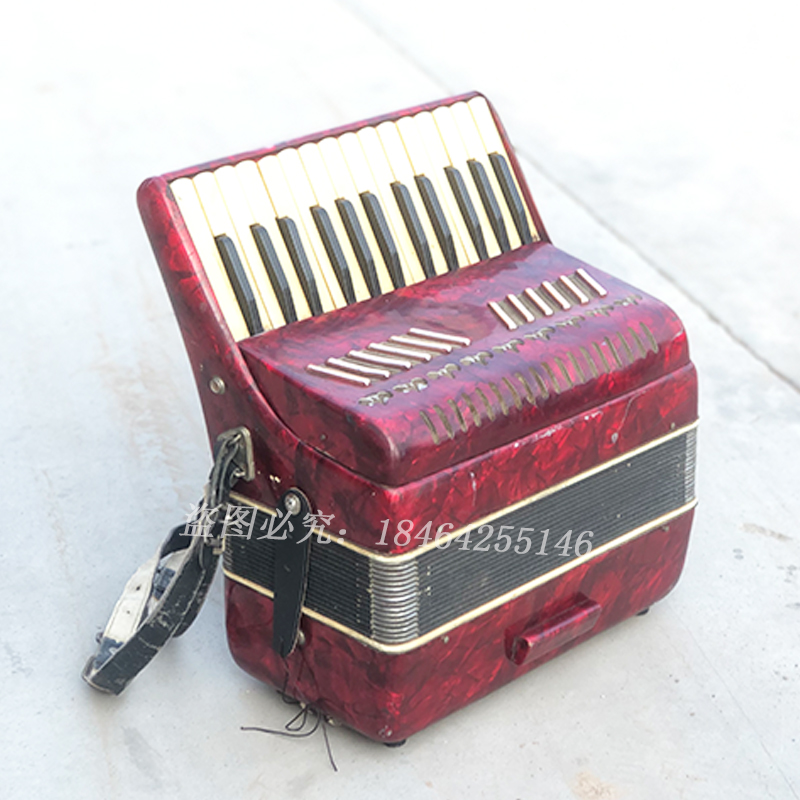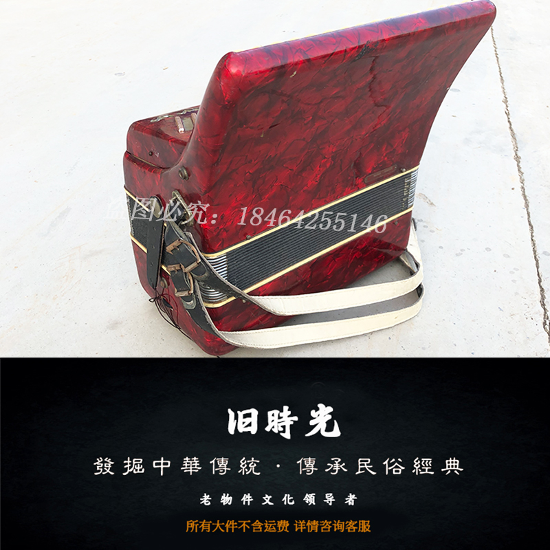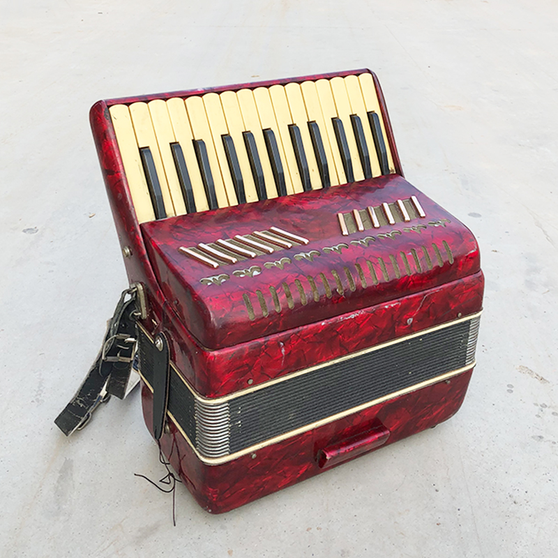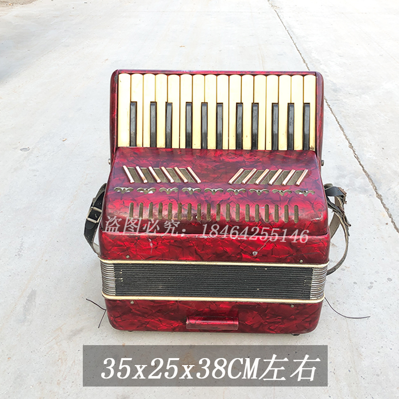 Folklore old objects nostalgic old accordion bass piano red collection window retro display decoration decoration antique
