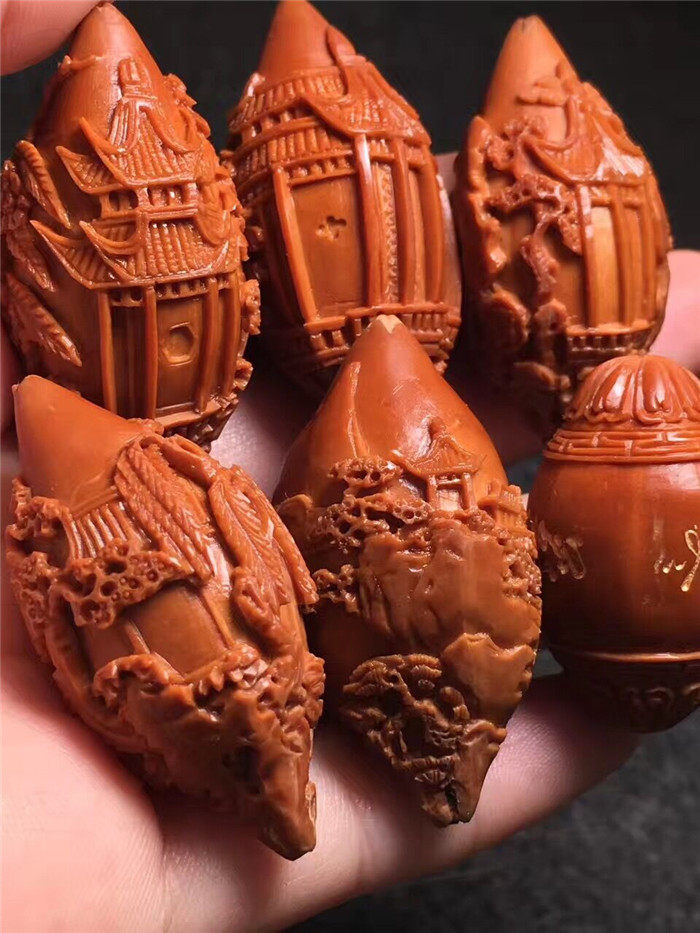 Suzhou Landscape Ten Scenery Su Gong famous designer pure handmade olive nuclear carving neck long string necklace hanging neck accessories