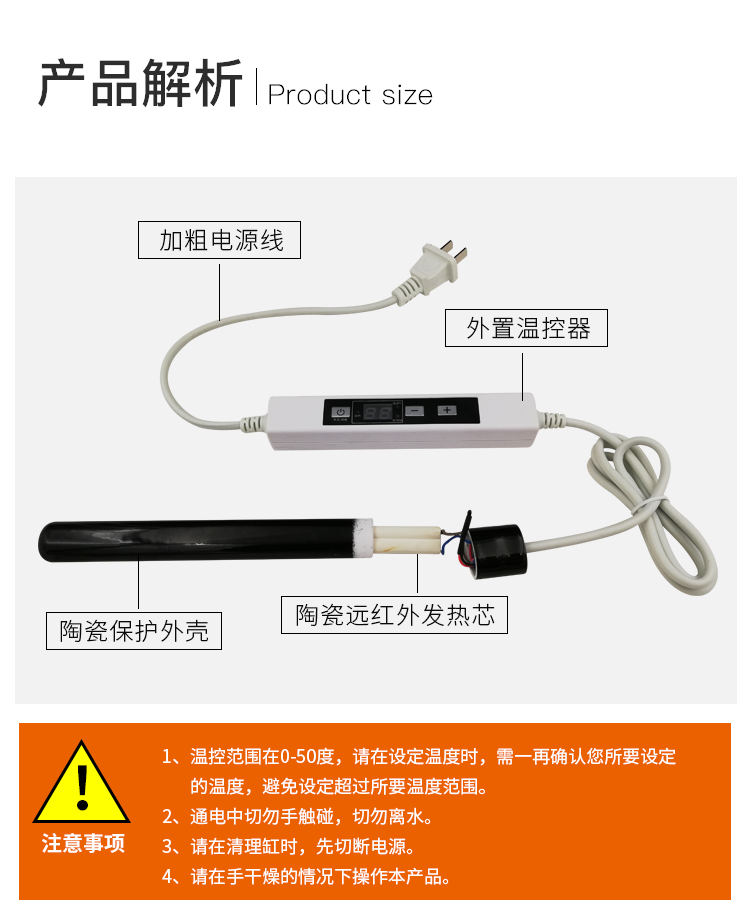 Patron Double Ceramic Double Insurance Far Infrared Ceramic Heating Rod Fish Tank Heating Rod Turtle Cylinder Heating Rod Turtle Insulation