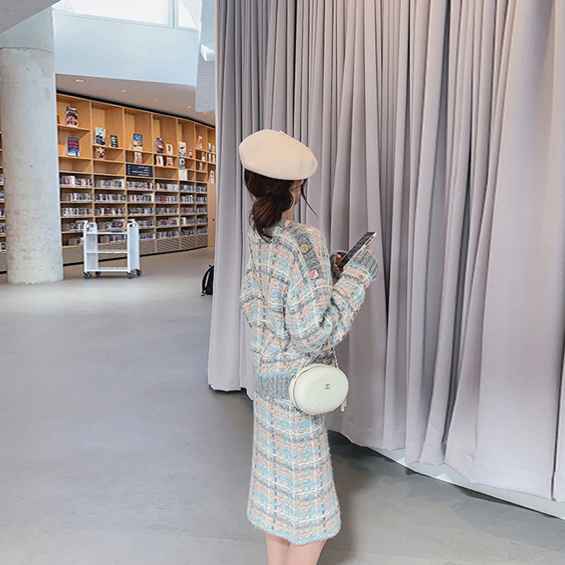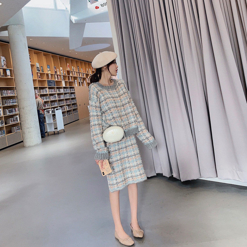 Plaid blouses with half a body dress.