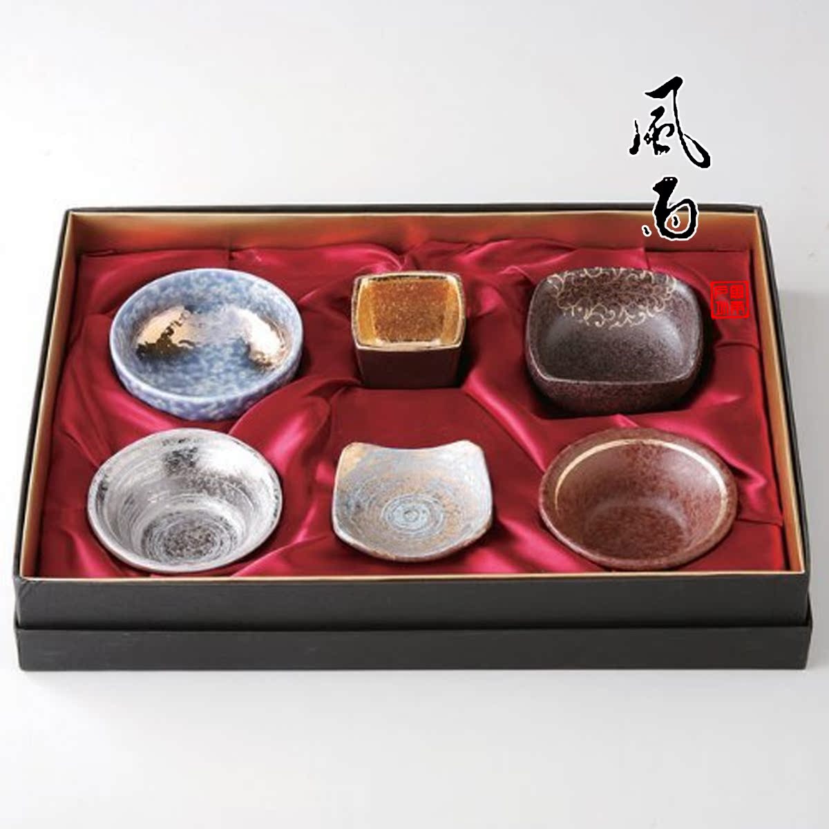 Japan Native with Tian Fever Pottery Delight Kiln Handcrafted Small Bowl Day Style Gold Silver Color Coarse Pottery Tea Spot Small Dish Six Sets