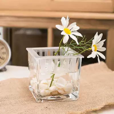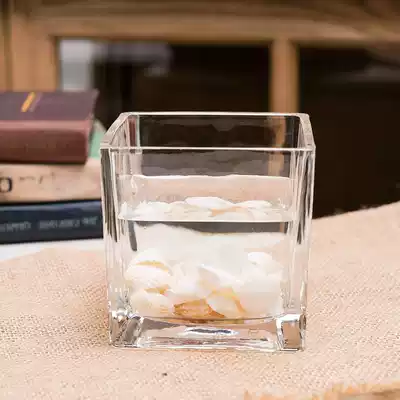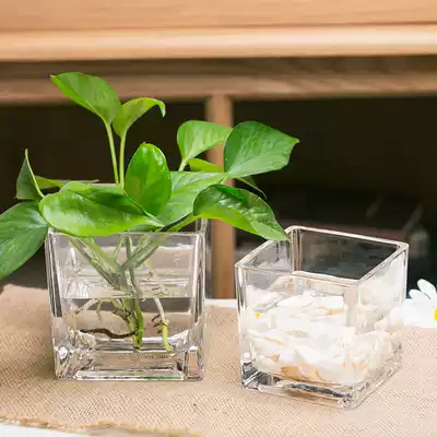 Simple square hydroponic glassware Transparent square jar Gold Ge water lily Copper money grass hydroponic flower pot Glass vase