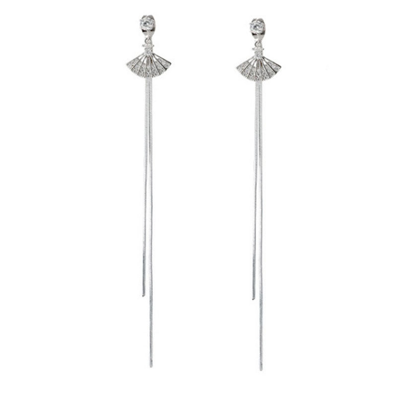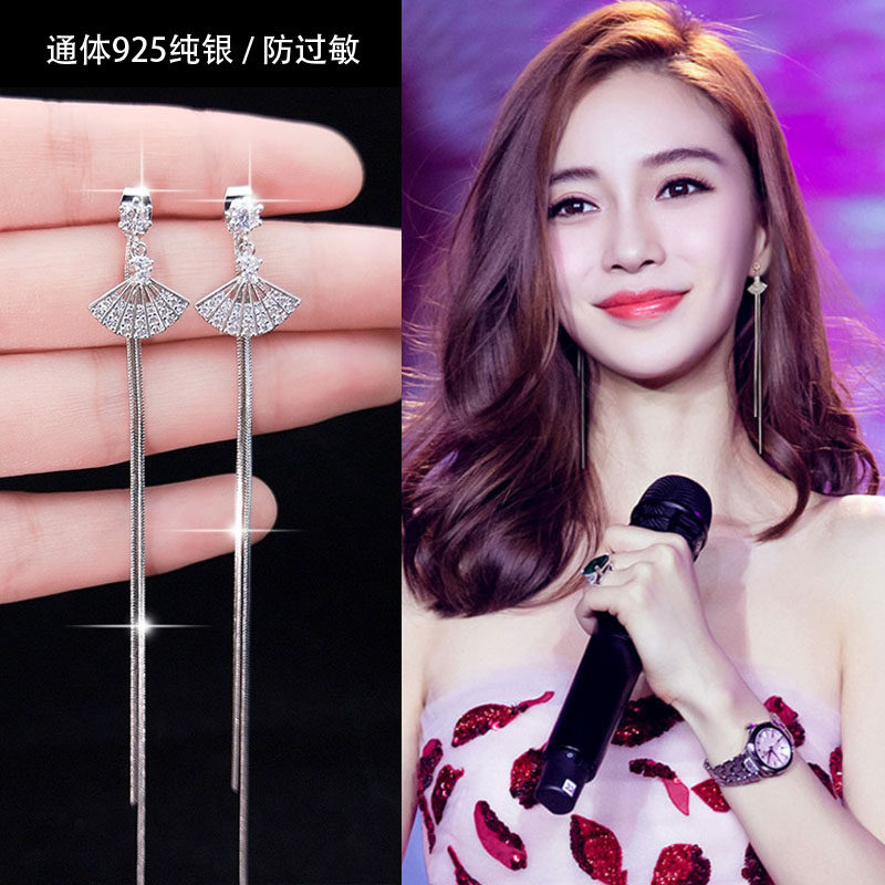 Fan-shaped 925 sterling silver earrings female 2021 new trendy long version temperament net red Korean version tassel hypoallergenic earrings