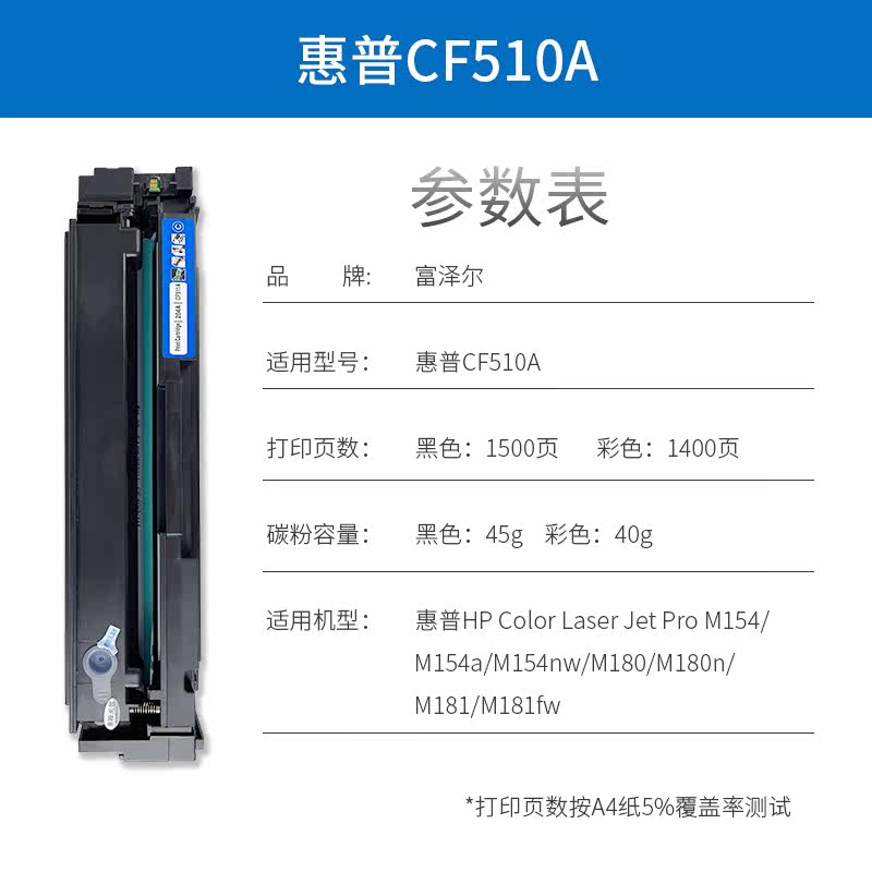 CF510A Black toner cartridge(5% coverage 1400 pages) CF511A Blue toner cartridge(5% coverage 1300 pages) CF512A Yellow toner cartridge(5% coverage 1300 pages) CF512A Black toner cartridge (5% coverage 1400 pages) CF511A Blue toner cartridge (5% coverage 1300 pages) CF512A Yellow Toner Cartridge (5% coverage