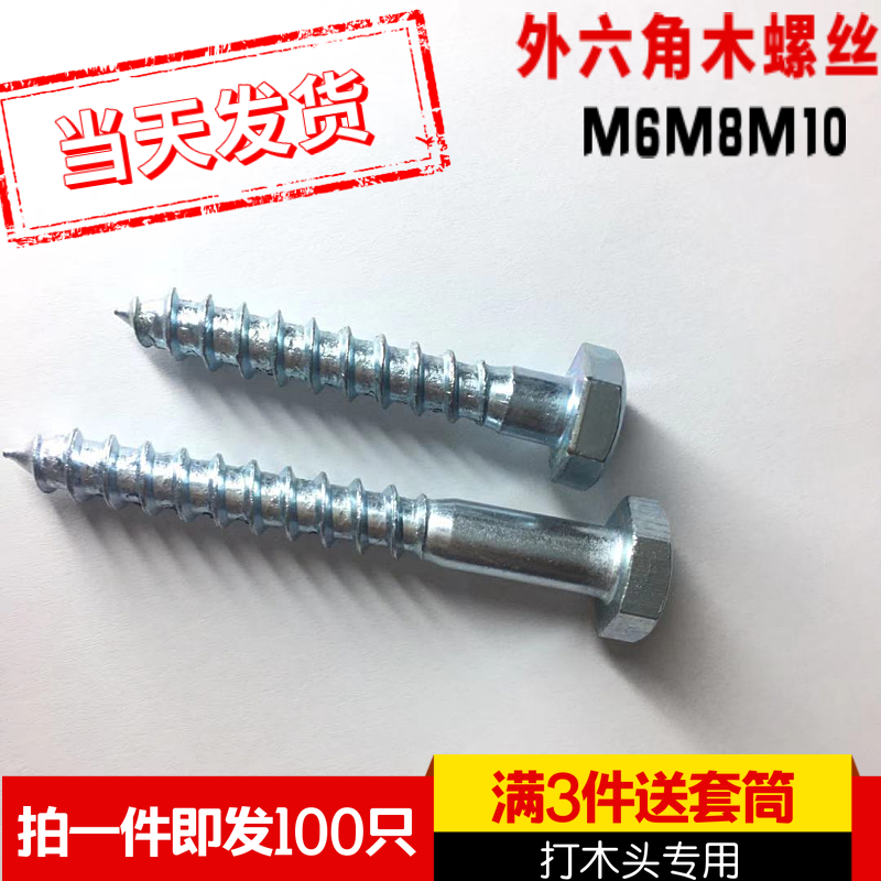 External hexagonal wood screw nail self-tapping screw thick tooth large size lengthened wood special M6M8M10
