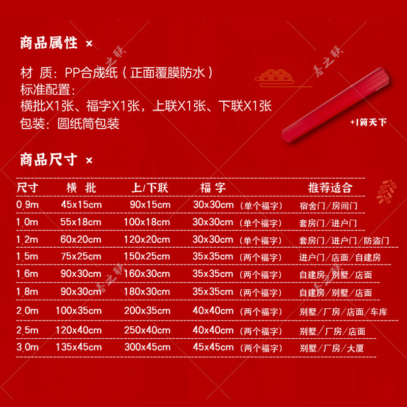 Length 0 9M*width 15CM (including 1 piece of blessing) length 1M*width 18CM (including 1 piece of blessing) length 1 2M*width 20CM (including 1 piece of blessing) length 1 5M*width 2