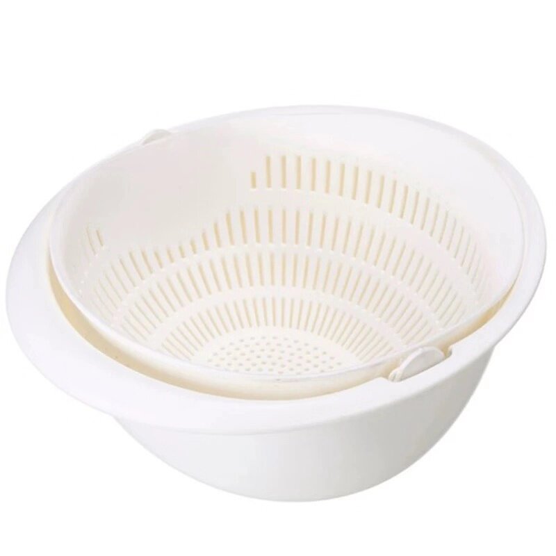 Rotatable Double Layer Kitchen Plastic Washing Vegetable Basket Fruit Vegetable Basin Filtered Water Leash Basket Naughty Blue Wash Rice Baskets