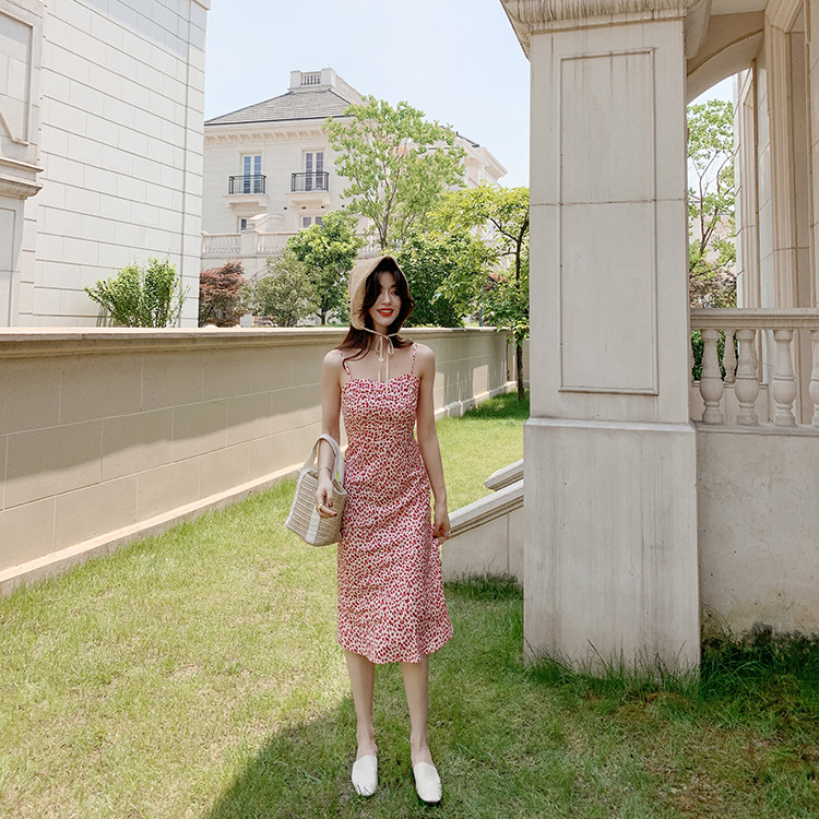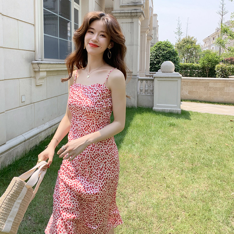 realisationpar Ma Si Chun star with small floral fishtail suspender dress beach vacation summer woman