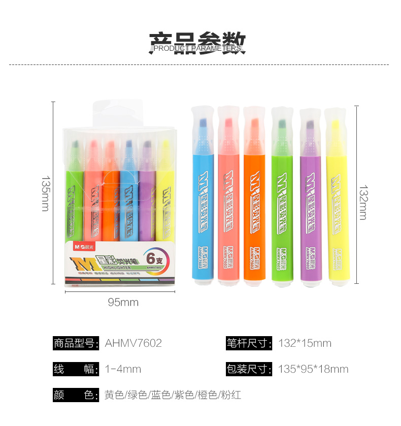 Chenguang Stationery 6-color highlighter single-head key marker note marker pen student original flavor series AHM27301