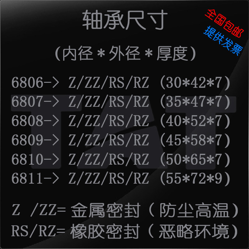 6809 Z 2Z --> Metal seals 6808-2RS RZ ---> Rubber seals 6811 Z ZZ 2Z --> Metal seals