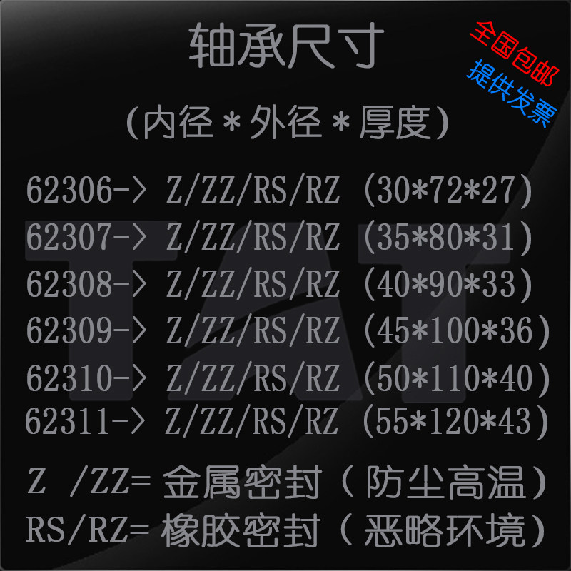 62306-2RS - - - - - - - - gt Rubber Seal 62307-2RS - - - - - - - - gt Rubber Seal 62308-2RS-