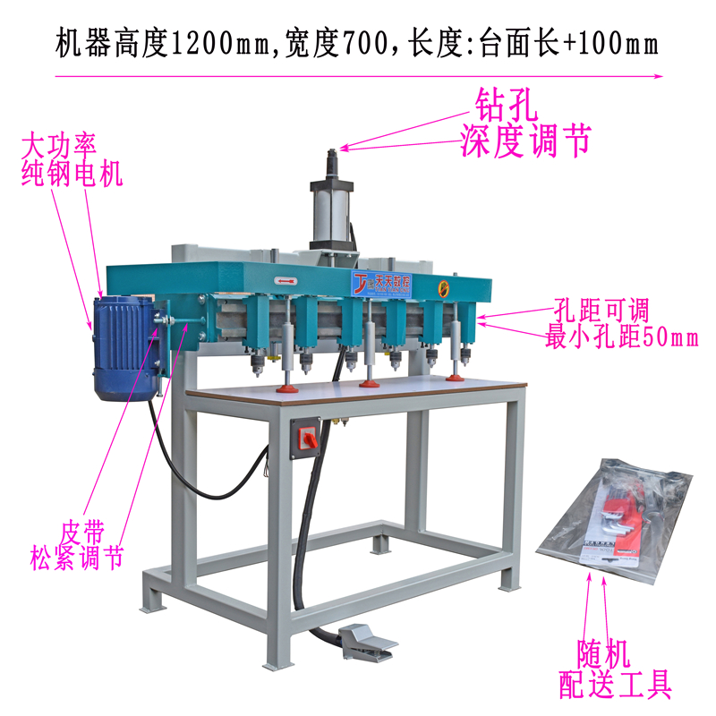 Simple pneumatic vertical single row multi-axis adjustable woodworking drilling machine drilling machine eye punching machine pneumatic mortise machine