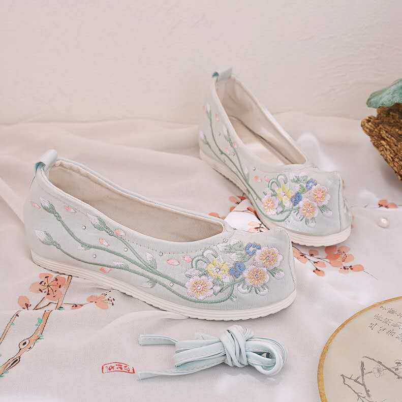 Colorful single shoes add new old fashion Han clothing with warp bow shoes embroidered lady shoes